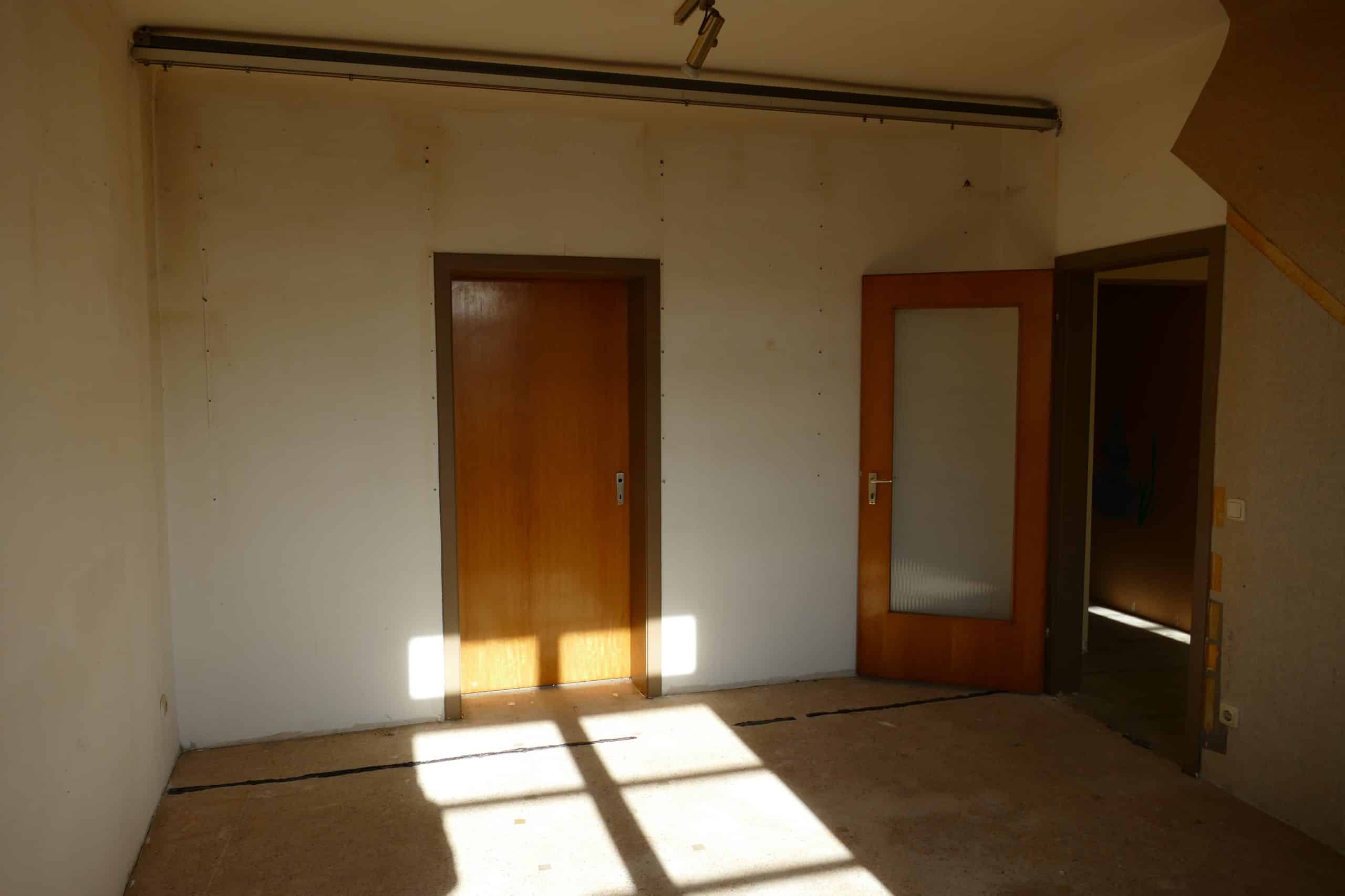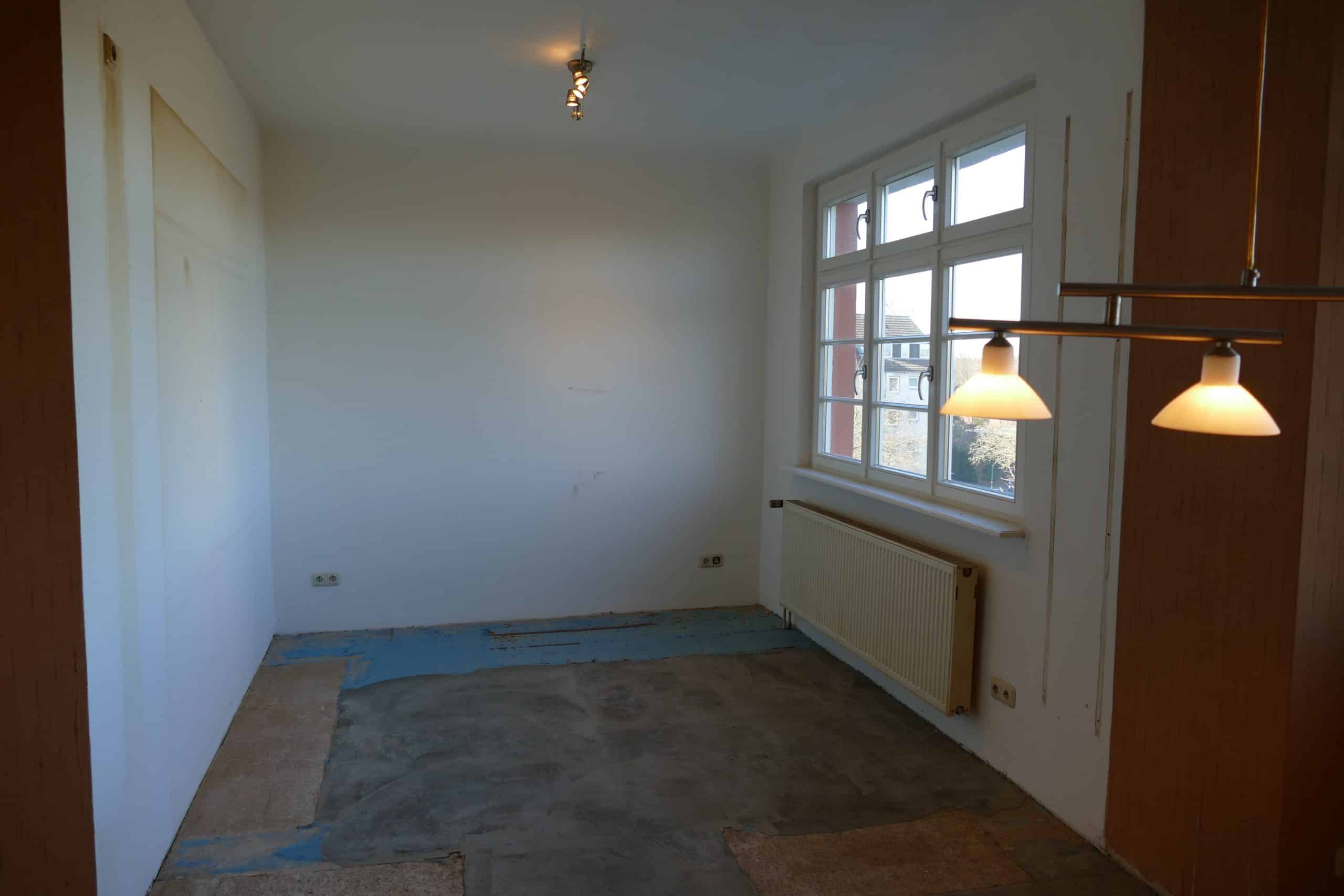 Die Wohnung umfasst rund 138,6 m² Wohnfläche. In der Küche und im Bad liegen Fliesen, während in den übrigen Bereichen derzeit keine Bodenbeläge vorhanden sind. Die Wände im Bad sind umlaufend halbhoch gefliest, die Wandflächen in der Küche teils gefliest; der Rest der Wandflächen ist verputzt, tapeziert und gestrichen.
