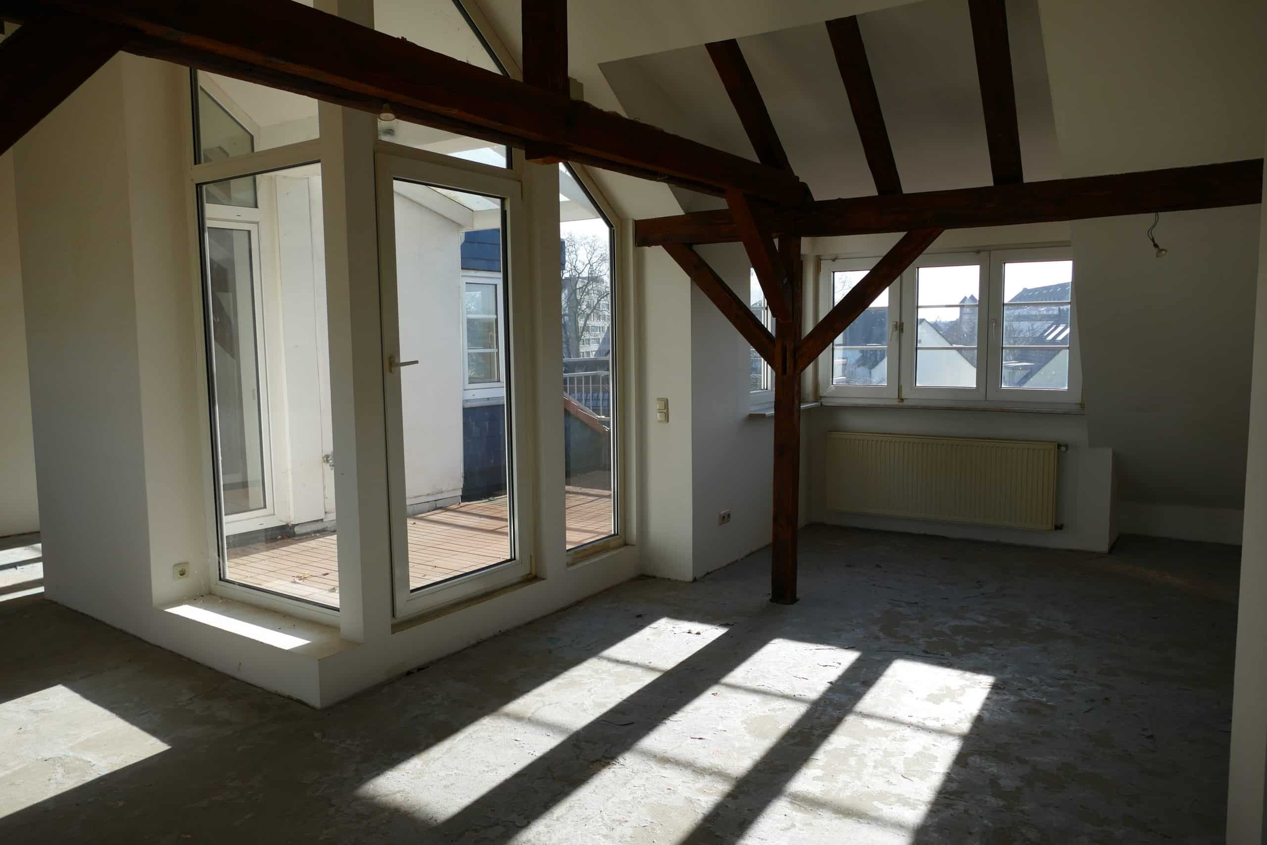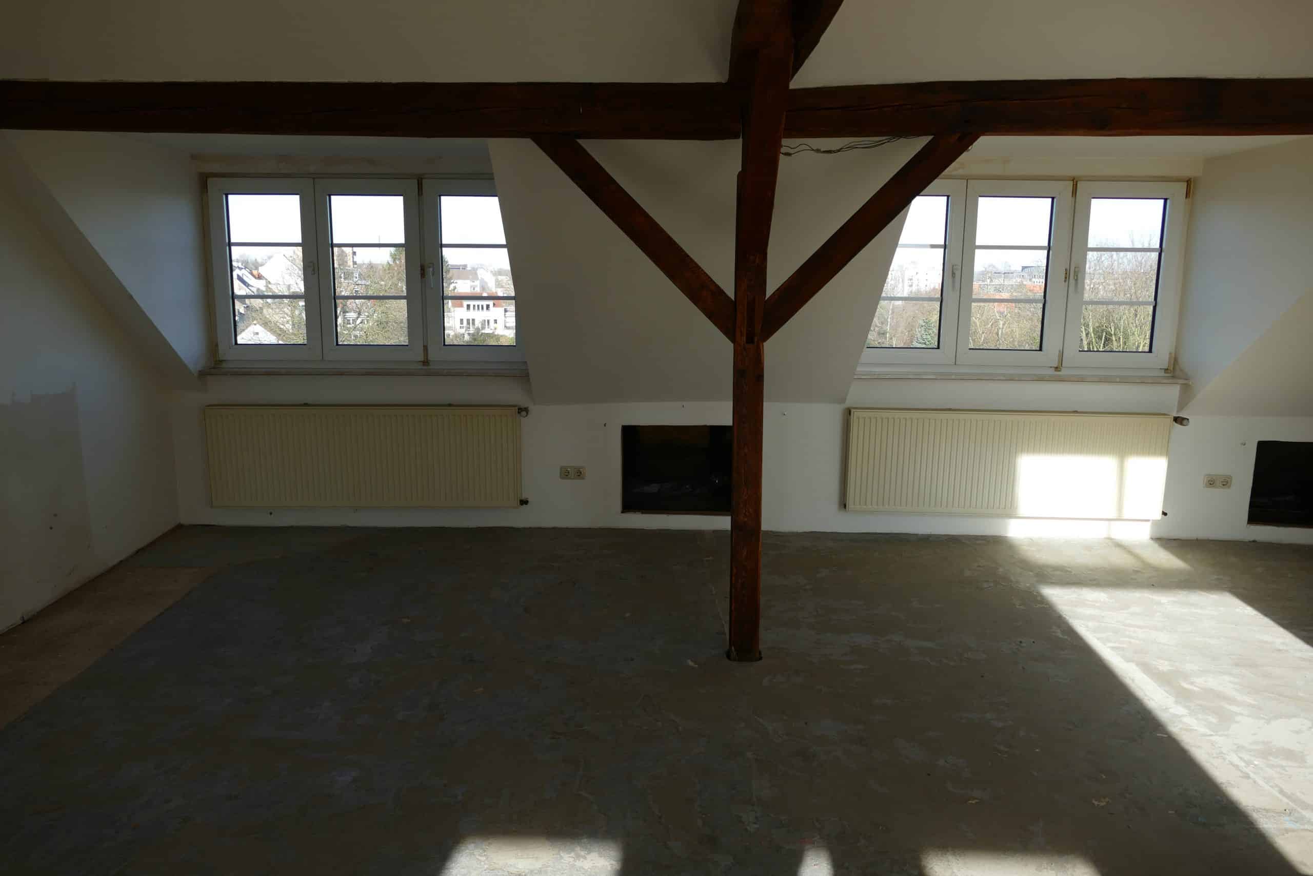Die Wohnung Nr. 10 ist eine großzügige Maisonette-Wohnung und befindet sich im 3. Obergeschoss sowie im ausgebauten Dachgeschoss auf der rechten Seite eines 1925 errichteten Altbaus, das Mehrfamilienhaus steht unter Denkmalschutz und ist in der Denkmalliste der Stadt Köln eingetragen.Die Wohnung wurde 1989 grundlegend renoviert, in diesem Zuge erfolgte auch der Ausbau des Dachgeschosses, wodurch der charakteristische Maisonette-Grundriss entstanden ist.