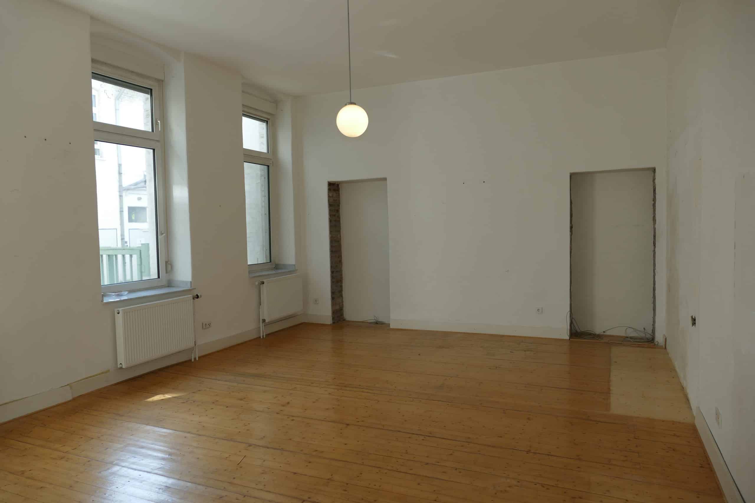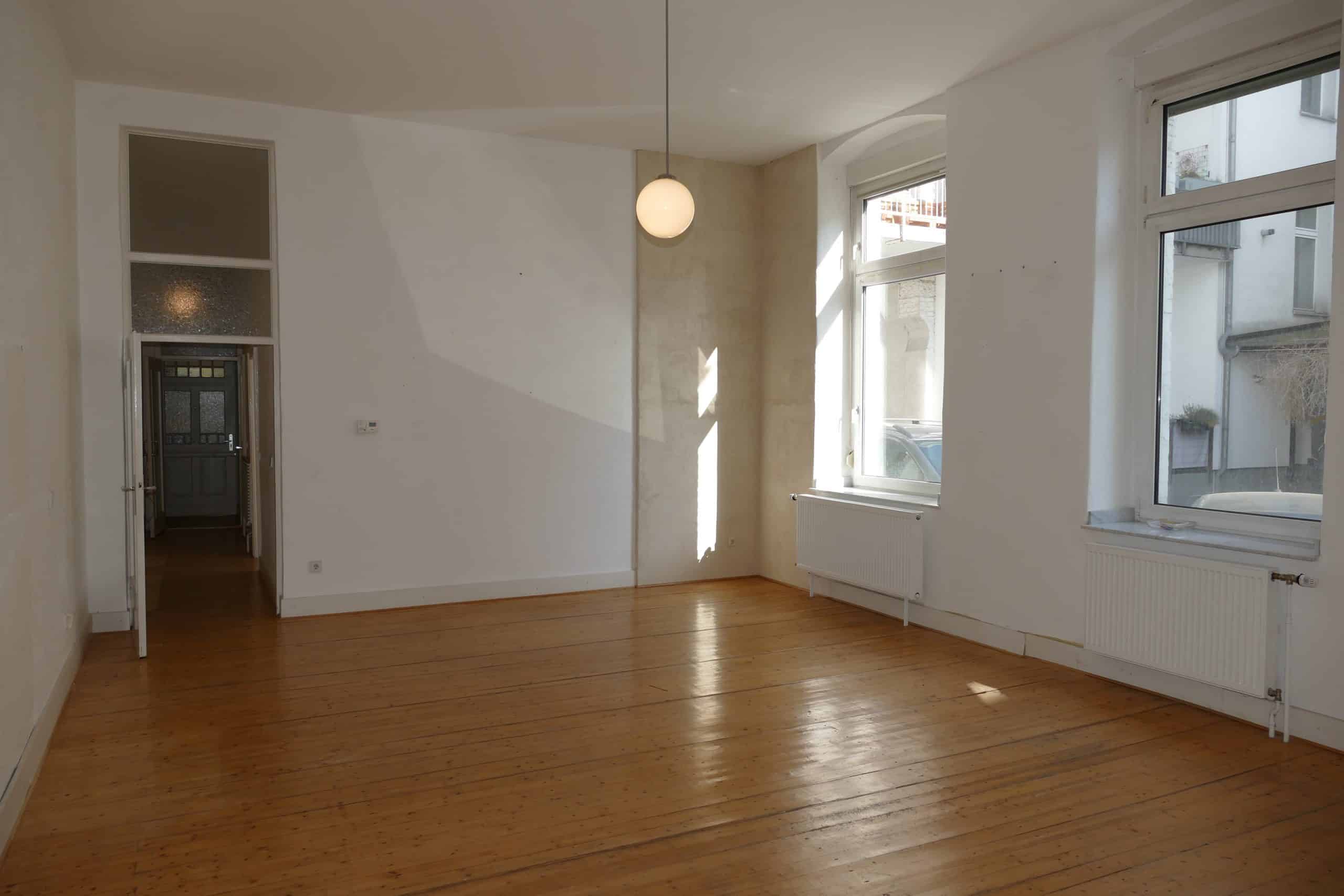 Die Wohnung verfügt über eine Gesamtwohnfläche von ca. 60,24 m² und überzeugt durch eine gut geschnittene Raumaufteilung sowie eine helle, freundliche Atmosphäre. Große Fensterflächen sorgen in allen Räumen für viel Tageslicht und unterstreichen den besonderen Charakter der Immobilie. Die für den Altbau typischen, großzügigen Deckenhöhen schaffen zusätzlich ein angenehmes Raumgefühl.